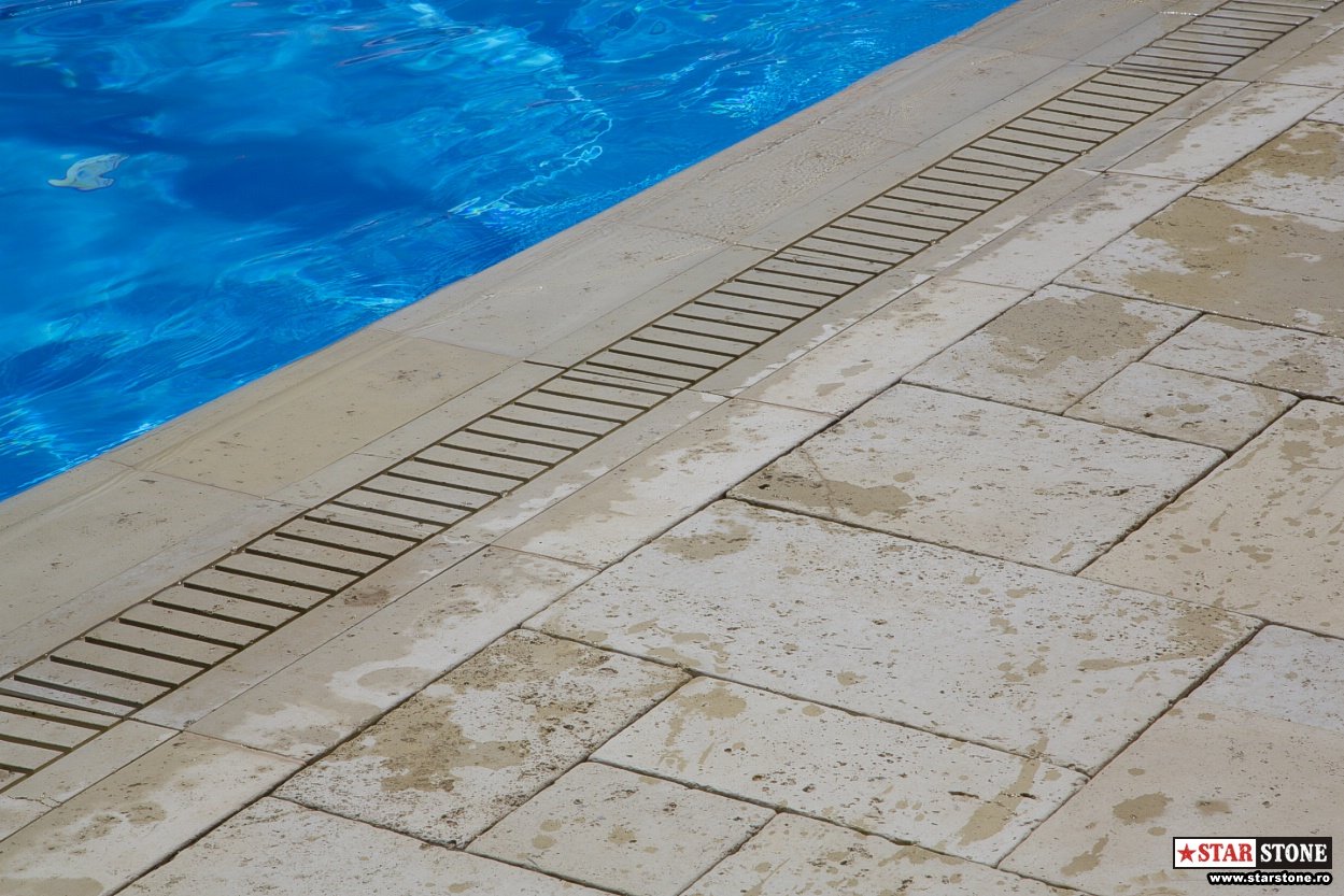 Textura suprafețelor calcaroase este antiderapantă pentru a preveni accidentele iar geometria bordurilor noastre devine un element decisiv in crearea imaginii finale a piscinei la care visați.